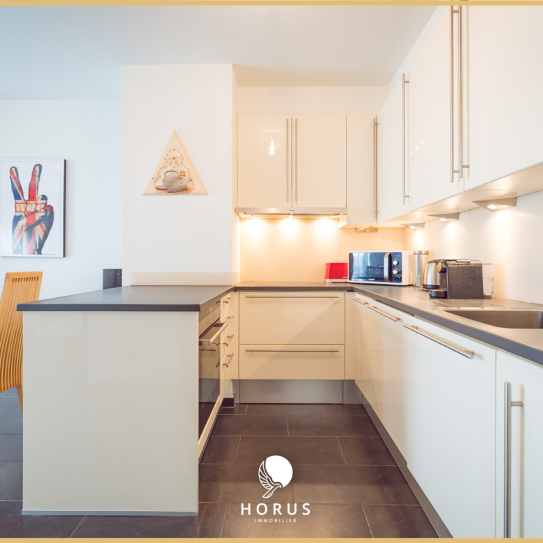 – Une cuisine équipée ouverte sur le salon / salle à manger avec accès à la terrasse (+/-27m²)