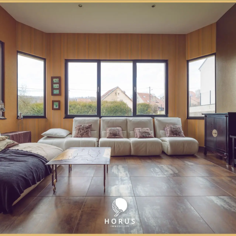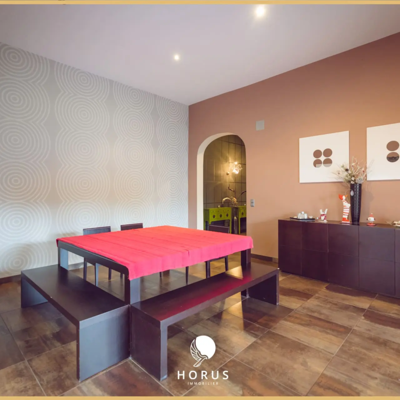 HORUS Immobilier vous propose à la vente en exclusivité cette maison libre de 3 côtés faisant +/-300m² de surface utile dont +/-167m² de surface habitable, située à Rédange (France).
