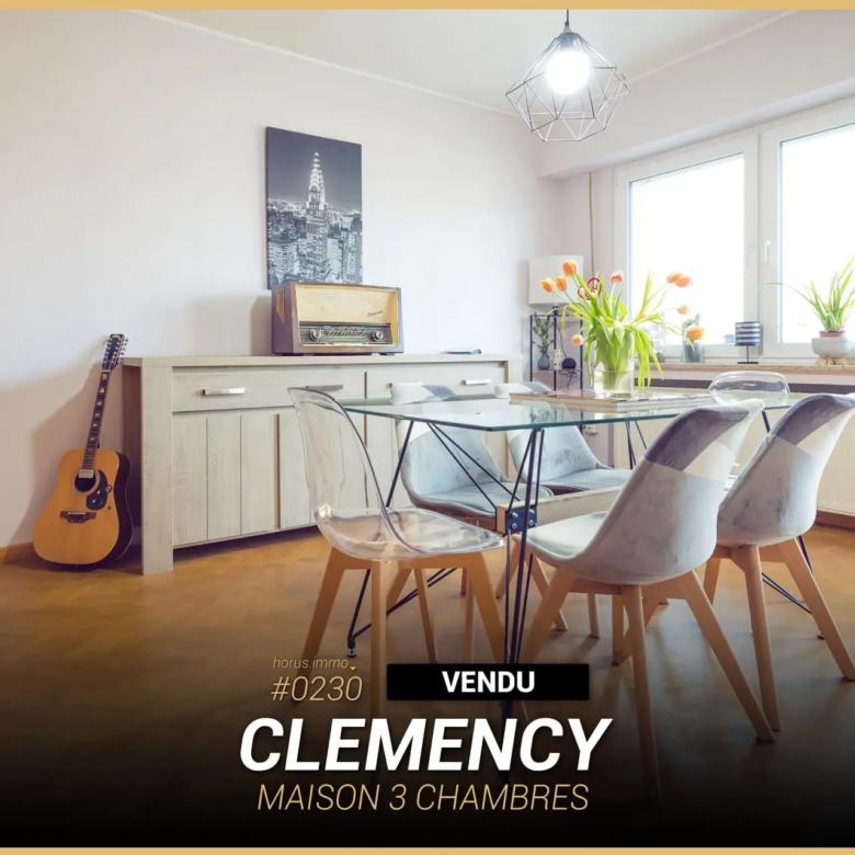 HORUS Immobilier vous propose à la vente en exclusivité cette maison 3 chambres de 1965 faisant +/-185m² de surface utile dont +/-148m² de surface habitable, située à Clemency, commune de Käerjeng.