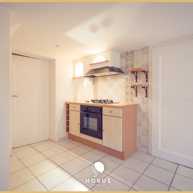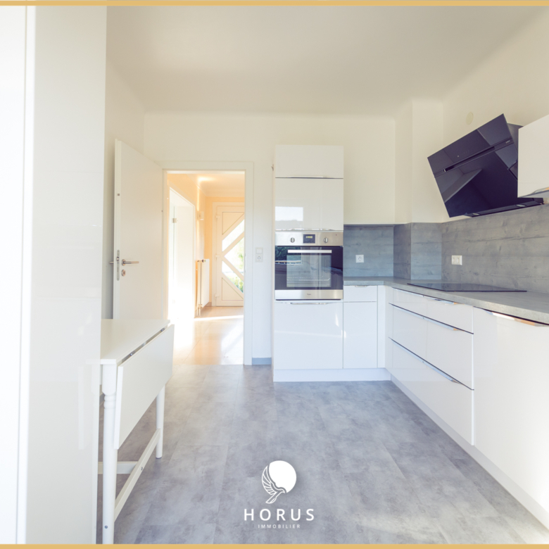 – Une cuisine équipée séparée avec accès au balcon (+/-14m²)