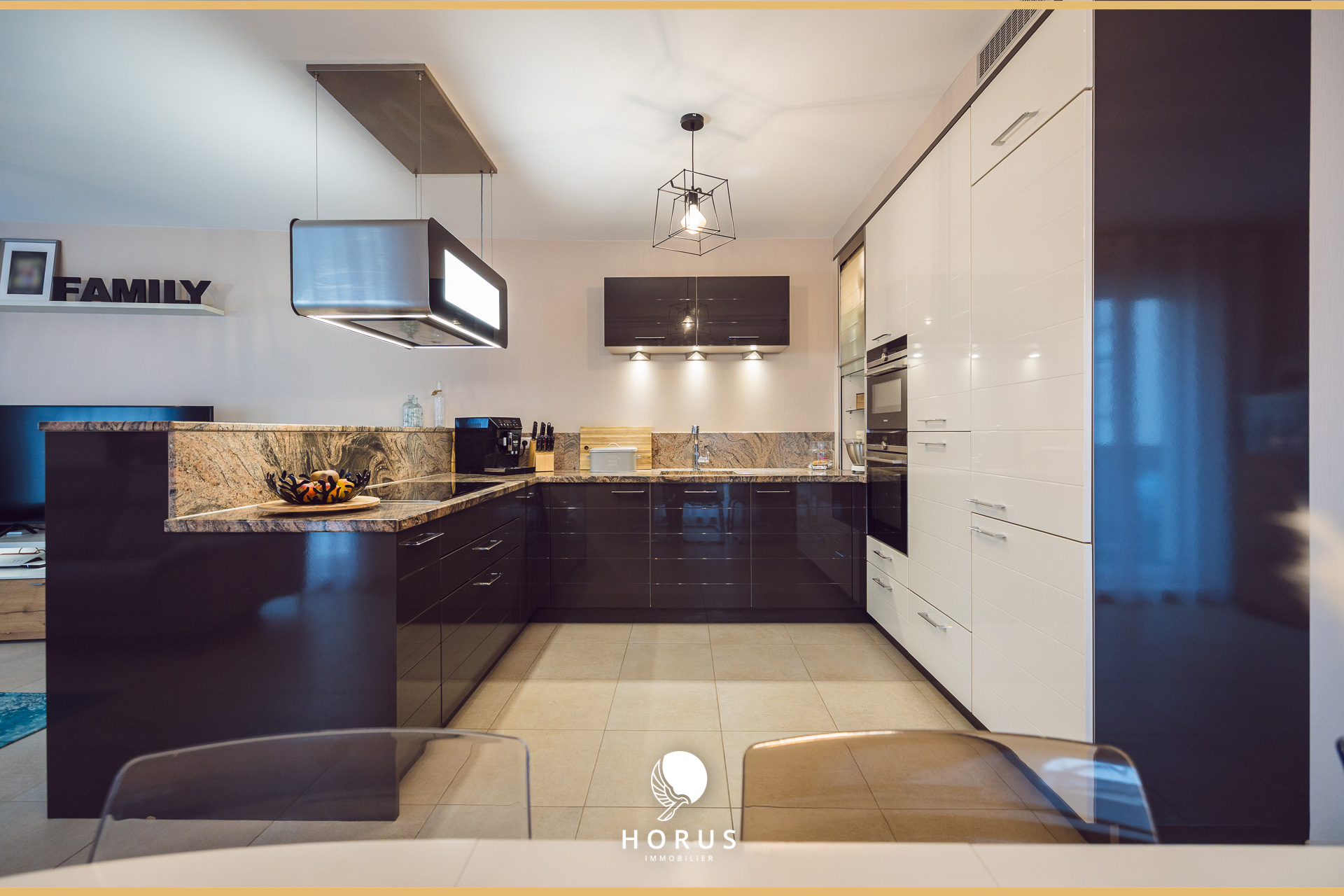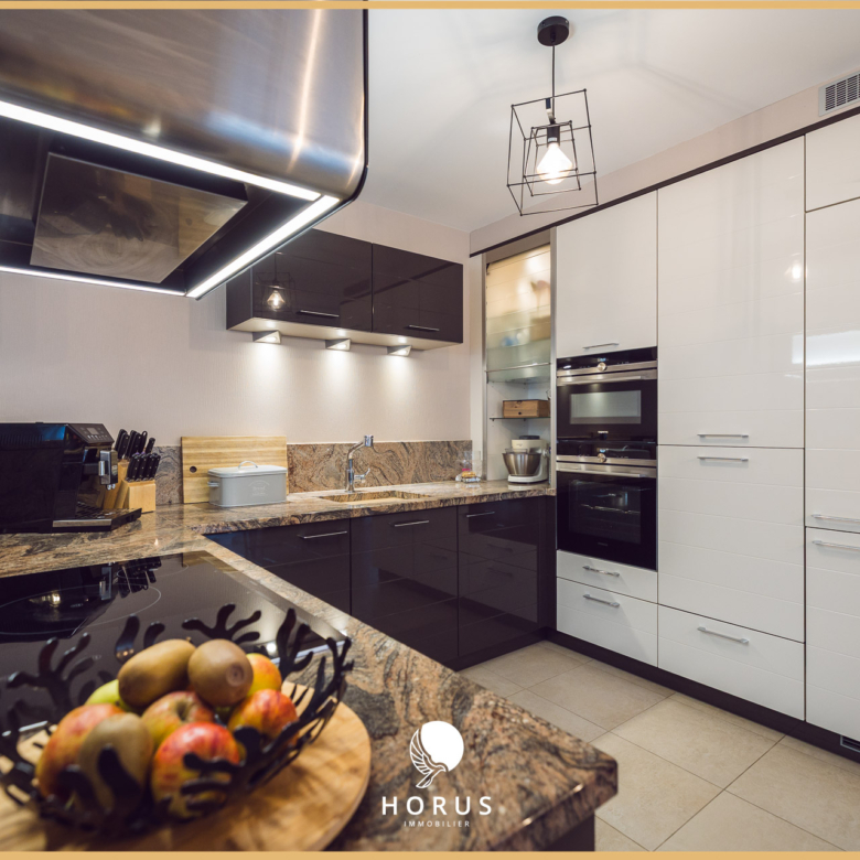 – Une cuisine équipée ouverte sur le séjour (+/-48m²) avec accès au balcon