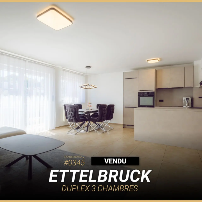 HORUS Immobilier, vous propose à la vente en exclusivité cet appartement / duplex de 3 chambres faisant +/-158m² de surface utile dont +/-100m² de surface habitable, situé au 2e étage d’une résidence de 4 unités de 2010 à Ettelbruck.
