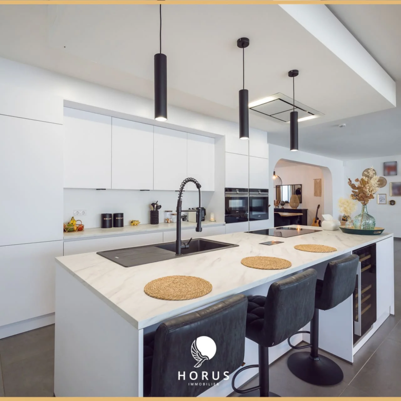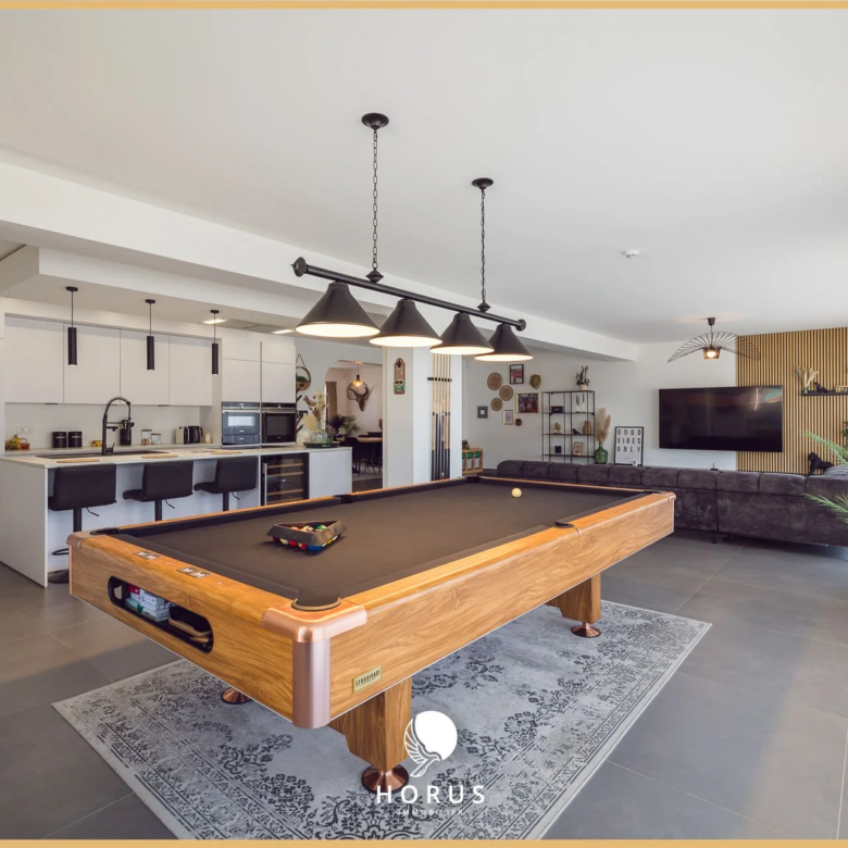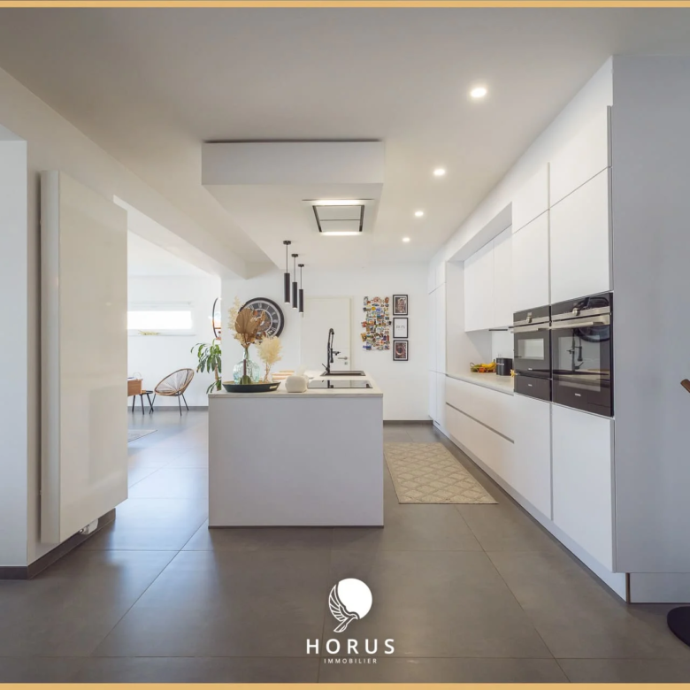 – Une cuisine équipée ouverte sur le salon (+/-90m²)