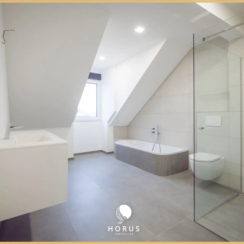 HORUS Immobilier vous propose à la vente cet appartement / triplex de 5 chambres faisant +/-153m², situé au rez-de-chaussée d’une copropriété de 2 unités complètement rénovée en 2024 / 2025 à Fennange, commune de Bettembourg.